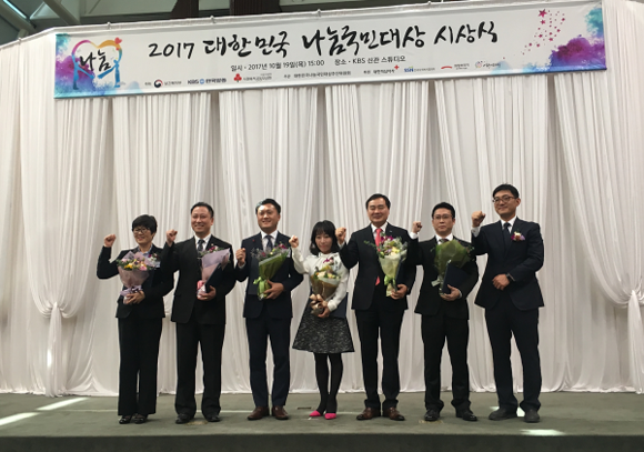 남부발전은 19일 KBS 신관 공개홀에서 열린 '2017 대한민국 나눔국민대상 시상식'에서 지역 나눔사업에 적극 앞장선 점을 인정받아 보건복지부장관 표창을 수상했다고 밝혔다.