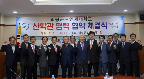 인제대학교(총장 차인준)와 의령군(군수 오영호)은 지역사회 발전과 기업의 맞춤형 인재양성을 통한 경쟁력 강화 및 지역사회와 대학의 공동 발전을 위해 19일 의령군청에서 '인제대학교-의령군 산학관 협력 협약'을 체결했다.