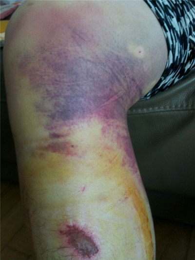 ▲부산대병원 한 전공의가 A교수에게 구타당한 흔적. (사진=유은혜 의원실)