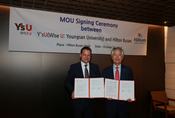 이번 협약식은 부산 지역 호텔 가운데 최다 부대시설을 소유하고 있는 힐튼호텔과 와이즈유 호텔관광대학 전공학생들의 현장실습, 인턴 및 취업연계 등 다양한 분야에서 상호 협력체계를 구축하기 위해 마련됐다. 이번 협정에 따라 와이즈유 호텔관광대학 재학생들은 힐튼호텔에서 '주말 파트타임 멤버십' 제도를 통해 현장실무를 배우게 되며, 또한 힐튼호텔 임직원들은 와이즈유에서 재교육 훈련과정을 진행하게 된다.