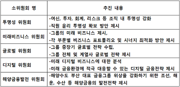 ▲'BNK백년대계 위원회' 내 5개 분과 위원회 개요.