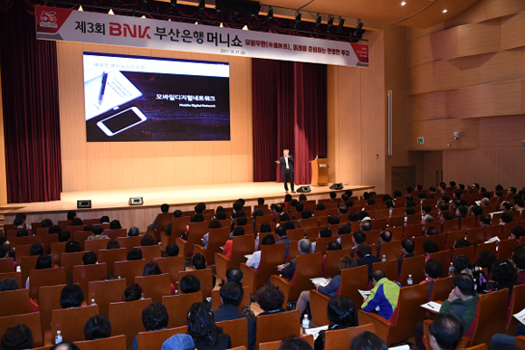 BNK금융그룹 부산은행(은행장 빈대인)은 27일 오후 본점 대강당에서 고객과 시민 400여명을 초청해 '유비무환(有備無患), 미래를 준비하는 현명한 투자'를 테마로 '제3회 머니쇼'를 개최했다.