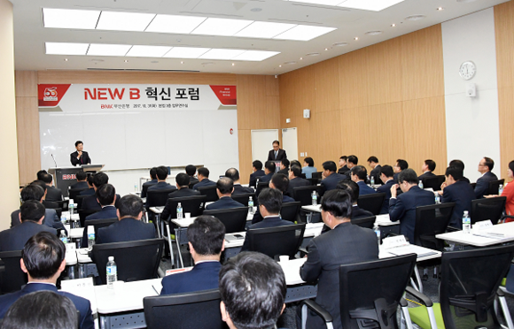 BNK부산은행(은행장 빈대인)이 창립 50주년을 맞아 31일 오후 부산 본점에서 빈대인 은행장을 비롯한 전 경영진 및 부실장 등 50여명이 참석해 변화와 혁신을 위한 'New B 혁신 포럼'을 개최했다.