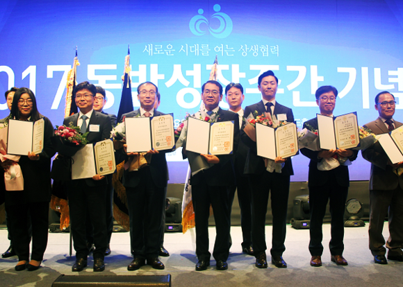 한국동서발전(사장직무대행 박희성)은 1일 오후 중소기업중앙회에서 열린 '2017 동반성장주간'에서 성과공유 문화 확산을 통해 대·중소기업 동반성장에 기여한 공로를 인정받아 성과공유 우수기업 대통령 표창을 수상했다.