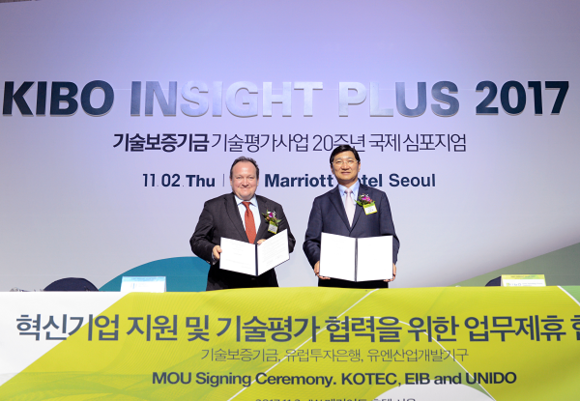 이날 오전 세션에서 기보와 유럽투자은행은 '혁신기업 지원 및 평가관련 협력을 위한 양해각서'를 체결함으로써 기보의 기술평가시스템을 유럽 선진국 기업의 기술평가 업무에 적용하는 국내 첫 사례를 구축했다.