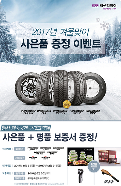 넥센타이어가 다가오는 겨울 시즌을 맞아 행사제품 구매고객 대상 사은품 증정 이벤트를 진행한다고 6일 밝혔다.