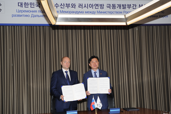 해양수산부는 6일 오후 서울 여의도 콘래드호텔에서 러시아 극동개발부와 '러 극동지역 내 양국 투자협력에 관한 양해각서'를 체결했다. 체결식에는 김영춘 해수부 장관과 알렉산드르 갈루쉬카(Alexander GALUSHKA) 극동개발부 장관이 참석했다.
