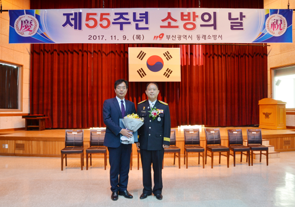 대선주조가 오늘(9일) 오전 부산 동래소방서에서 열린 '제55주년 소방의 날' 기념식에서 부산시장 표창을 수상했다.
