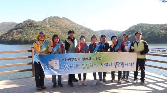 부산지방병무청은 포털사이트 '1365'를 통해 신청한 자원봉사자들과 직원 20여명 참석한 가운데 '시민과 함께하는 지역사랑 청렴캠페인' 행사를 회동수원지에서 실시했다고 13일 밝혔다.