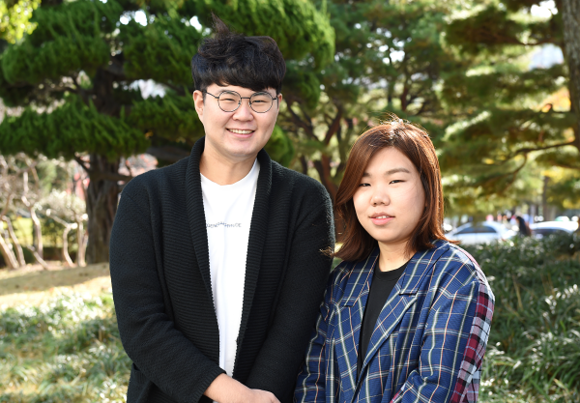 ▲제37회 부산산업 디자인 전람회에서 대상을 수상한 박성훈(왼쪽)씨와 금상을 수상한 황희지 씨. (사진=부경대)