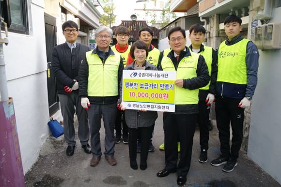 좋은데이나눔재단은 17일 창원시 마산회원구 합성동 일대에서 경남노인통합지원센터로부터 추천받은 가구를 선정해 도배 및 장판 교체 등 시설보수를 진행했다. 이날 행사에는 강민철 좋은데이나눔재단 이사(무학 대표이사)와 문영래 좋은데이나눔재단 경남본부장, 무학 임직원으로 구성된 좋은데이 봉사단 등 10여 명이 참석해 봉사활동을 진행했다.
