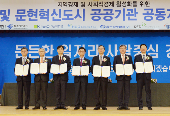 부산시와 문현혁신도시 소재 6개 공공기관(기술보증기금, 주택도시보증공사, 캠코, 한국남부발전, 한국예탁결제원, 한국주택금융공사)은 21일 오후 부산국제금융센터에서 '지역경제 및 사회적경제 활성화를 위한 공동지원 업무협약'을 체결하고, 사회적경제 활성화와 지역균형발전을 위한 본격적인 활동에 들어갔다.