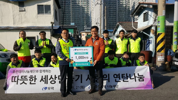 무학그룹 좋은데이나눔재단은 겨울철 어려운 이웃을 돕기 위해 '2017 사랑의 연탄나눔' 캠페인에 연탄 2만 여장(1000만 원)을 부산밥상공동체 연탄은행에 기부했다.