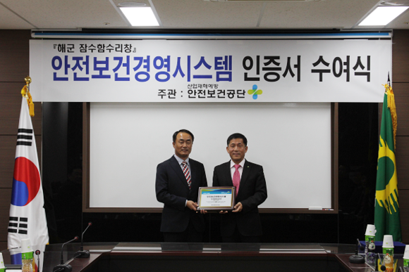 공단과 해군은 지난 3월 안전관리 분야 교류·협력에 관한 업무협약(MOU)을 체결하고 안전문화 정착을 위한 상호 협력적인 지원을 약속했다. 이에 해군 잠수함수리창은 안전보건경영시스템 도입을 통하여 안전보건 의식을 확고히 하는 한편 부대 내 안전보건 정착을 위한 기틀을 구축했다.