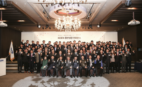 ▲30일 대전 KW컨벤션센터에서 2017 KOEN 동반성장 컨퍼런스에 참가한 남동발전과 참여기업 임직원들이 기념촬영을 하고 있다. (사진제공=남동발전)