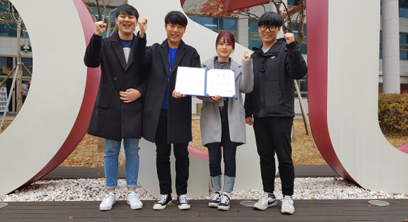 ▲제12회 부산영상공모전에서 대상을 수상한 동서대팀(왼쪽부터 채종현, 김기호, 김민지, 박상철 씨). (사진제공=동서대)