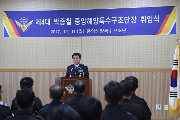 제4대 박종철 신임 중앙해양특수구조단장 취임식이 11일 중앙해양특수구조단 강당에서 열렸다.