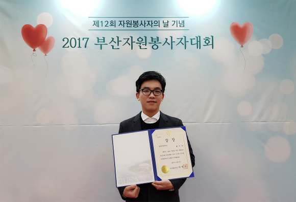 검정고시 강의 등 꾸준한 사회봉사를 해온 학생이 자원봉사자대회에서 부산시장상을 수상해 화제다.