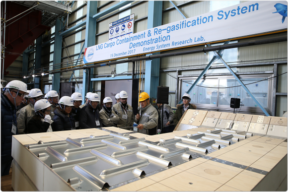 대우조선해양(대표이사 정성립)은 자체 개발한 간접 열교환식 재기화 장치와 액화천연가스(LNG) 화물창인 '솔리더스(SOLIDUS)'와 '맥티브(MCTIB)' 시연회를 옥포조선소 내 에너지시스템 실험센터에서 성공적으로 개최했다고 18일 밝혔다.