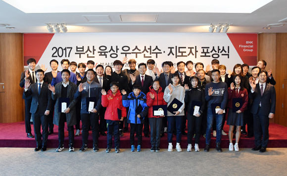BNK부산은행은 27일 본점에서 '제98회 전국체전'과 '제46회 전국소년체전'에서 우수한 성적을 거둔 부산지역 선수 및 지도자 47명을 대상으로 포상식을 가졌다.