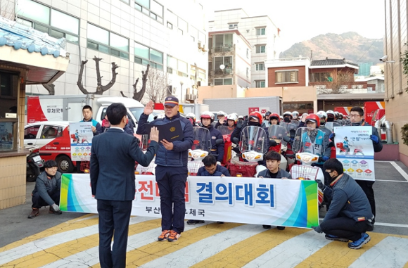 부산지방우정청은 2일 부산·울산·경남지역의 66개 총괄우체국 및 집배센터 집배원 2700여명이 새해를 맞아 첫 업무 시작과 함께 '2018년 새해맞이 집배원 안전발대식' 을 가졌다고 밝혔다.