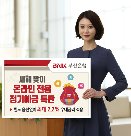 BNK부산은행은 2018년 무술년 새해를 맞아 최대 2.2% 금리를 적용받을 수 있는 온라인 전용 정기예금 특판을 실시한다고 4일 밝혔다.