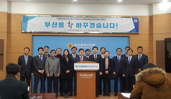 더불어민주당 부산시당은 15일 오후 부산시의회 브리핑룸에서 기자회견을 열고 6월 지방선거에 부산시의원 후보로 출마할 예정인 신진 인사들을 발표하며 "올해 과반이상 시의원 당선자를 내겠다"는 포부를 밝혔다.