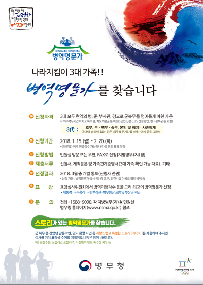 병무청의 병역명문가 선양사업은 병역이행이 자랑스러운 사회 분위기 조성을 위해 2004년도부터 시작됐으며, 올해로 열다섯번째 이다.