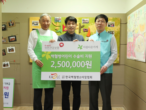 국민건강보험공단 부산지역본부는 16일 오전 부산 동래구 소재 (사)한국백혈병소아암협회 부산지회 부설 희망다미센터를 방문해 백혈병어린이를 위한 수술비 250만원을 전달했다고 밝혔다.