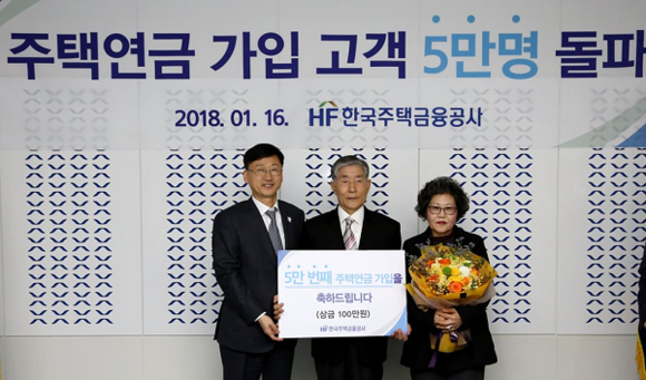 주택연금에 5만번째로 가입한 옥씨 부부는 내 집에 살면서 평생동안 매월 연금을 받으며 사망시 재산이 남으면 상속이 가능하다는 점 때문에 주택연금에 가입했고, 5만번째 고객이 되는 행운을 얻었다. 공사는 5만번째 가입자인 옥씨 부부를 초청해 감사를 표시하고 축하금 100만원을 전달했다.