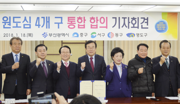 부산시와 원도심 4개 구(중·서·동·영도구)가 2022년 원도심 통합에 원칙적으로 합의했다.