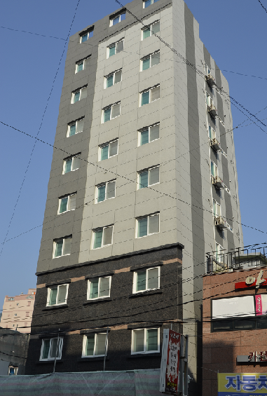 ▲지난해 '기우뚱 오피스텔'로 사회적 이슈가 됐던 부산 하단동의 D오피스텔. 같은해 10월 복원공사로 기울기가 A등급으로 복원됐다. (사진=최원석 기자)