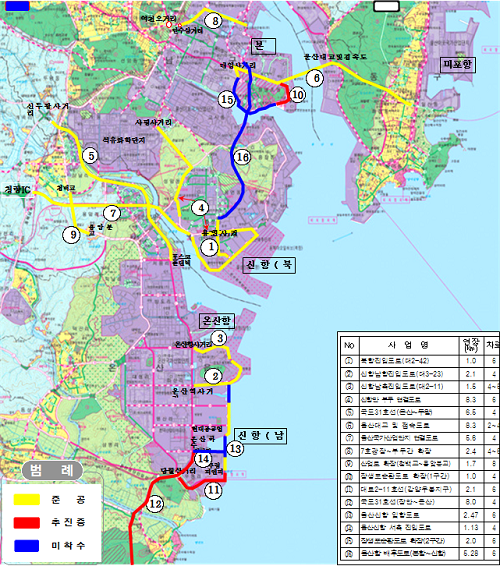 이에 따라 울산시는 울산항 배후도로(본항~신항) 건설사업의 재추진을 위해 우선 제4차(`21~`30) 항만기본계획(`19년 예정)시 해당 사업노선에 대해 '임항교통시설'로 존치키로 했다.