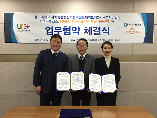 동아대학교 사회맞춤형 산학협력 선도대학 육성사업단(LINC+)은 사하구 보건소·행복을나누는도시락 서구센터와 함께 '실버영양 카운슬링 사업' 협약을 맺었다고 29일 밝혔다.