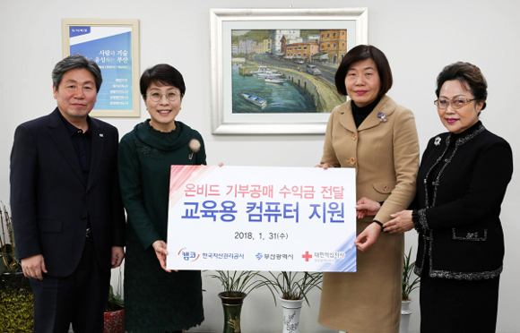 한국자산관리공사(캠코)는 31일 오후 부산시청에서 공공자산처분시스템인 '온비드'를 통해 진행한 '기부공매' 낙찰수익금 등 3600만원을 대한적십자사 부산지사에 전달했다. 기부금은 부산지역 19개 아동 복지시설의 PC 지원에 사용된다.