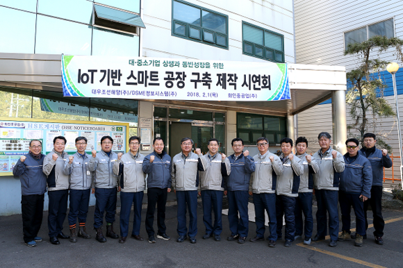 ▲1일 경남 함안 화인중공업에서 대우조선해양, DSME정보시스템 등 관계자들이 참석한 가운데 스마트 공장 시연회를 가졌다. (사진제공=대우조선해양)