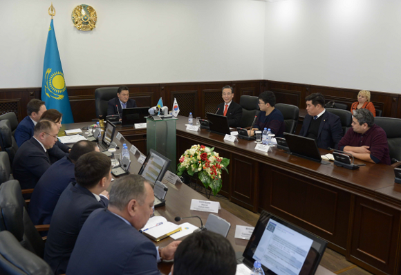 ▲허재택 동아대병원장(오른쪽 줄 첫번째)이 카자흐스탄 파블로다르 주지사 등 관계자들과 미팅을 갖고 있다. (사진제공=동아대병원)