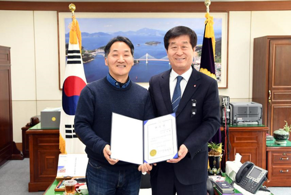 ▲왼쪽부터 김치환 와이즈유 교수, 박동식 경남도의회 의장. (사진제공=와이즈유)