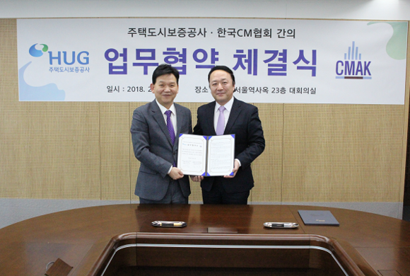 주택도시보증공사(HUG)는 최근 한국건설관리협회(한국CM협회)와 건설사업관리 전문성 강화를 위한 상호 협력체계를 구축하는 업무협약을 체결했다.