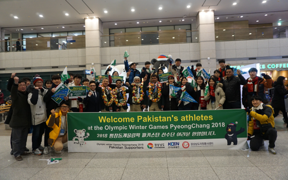 한국남동발전은 6일 인천국제공항에서 경상남도와 함께 후원하는 평창 동계올림픽 파키스탄 참가선수단의 입국 환영식을 가졌다.