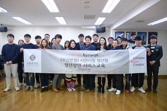 6일 부산진구 소재 서면시장 청년몰 창업가들이 롯데백화점 부산본점 교육장을 찾았다. 다가오는 3월 중 그랜드 오픈 영업에 앞서 백화점 전문 서비스 교육을 체험하기 위해서다.