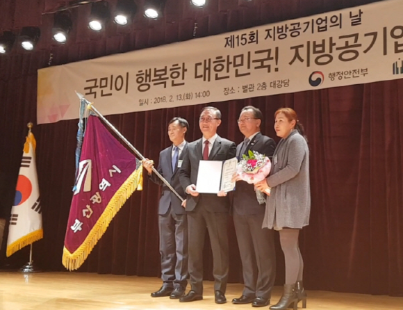 행정안전부에서 주관해 시상하는 '지방공기업 발전 유공포상'은 우수한 경영전략을 통해 경영실적이 개선되고, 정부정책을 준수하는 우수 지방공기업을 선정해 지방공기업의 날 행사 시 수여하고 있다.