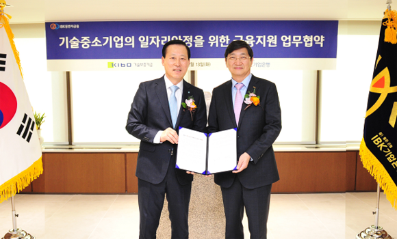 기술보증기금과 기업은행은 13일 기업은행 서울 본점에서 '기술중소기업의 일자리 안정을 위한 금융지원 업무협약'을 체결했다.