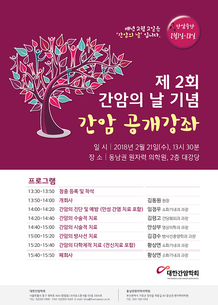 동남권원자력의학원이 2월 간암 예방의 달을 맞아 오는 21일 수요일 오후 1시 30분 2층 대강당에서 '간암 공개강좌'를 개최한다.