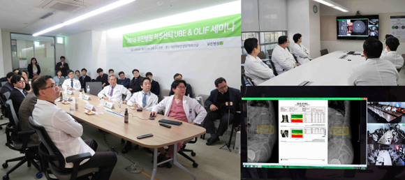 '2018 부민병원 척추센터 UBE & OLIF 세미나'로 명명된 이날 세미나에서는 척추관 협착증의 최신 치료 동향을 주제로 재단 산하 부민병원 척추센터 의료진 30여명과 국내 척추 의료진 20여 명 등 총 50여 명이 화상 컨퍼런스를 통해 치료 증례 및 연구 결과를 논의했다.