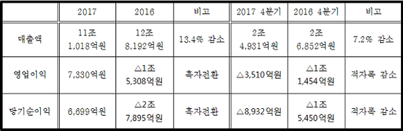 ▲2017년 잠정 실적(연결기준). (표=대우조선해양)