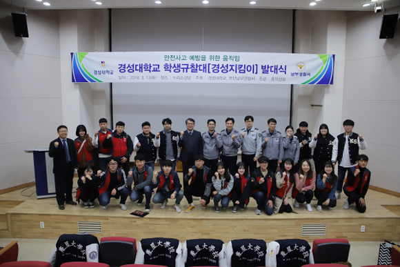 경성대학교는 캠퍼스 안팎의 안전을 위하여 남부경찰서와 협력해 '2018학년도 학생규찰대' 발대식을 13일 교내 누리소강당에서 가졌다.
