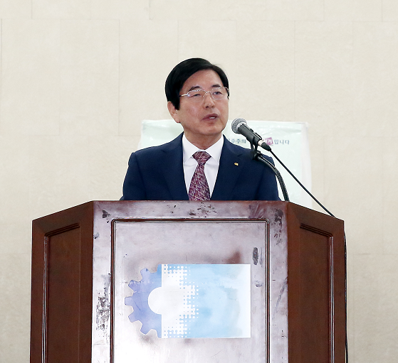 ▲16일 제23대 부산상의 회장에 선출된 태웅 허용도 회장이 당선 소감을 밝히고 있다. (사진제공=부산상의)