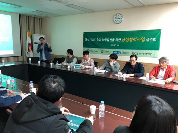 이날 설명회는 지난해 12월 농림축산식품부, 경상남도와 함께 맺은 '농업분야 온실가스 감축사업 지원을 위한 상생협력 업무협약'의 일환으로 온실가스 감축잠재량이 높은 지열히트펌프, 바이오가스플랜트 사업을 대상으로 우선 추진 예정이다. 이에 설명회를 통해 사업취지 발표, 지원농가 선정기준, 추진 일정 등을 소개했고, 이후 질의응답과 1대 1 개별 상담을 통해 사업참여 등록 신청이 이루어졌다.