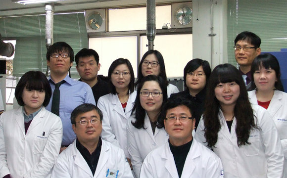 ▲홍영습 동아대 중금속노출환경보건센터장(맨 앞 줄 오른쪽)과 연구원들의 모습. (사진제공=동아대)